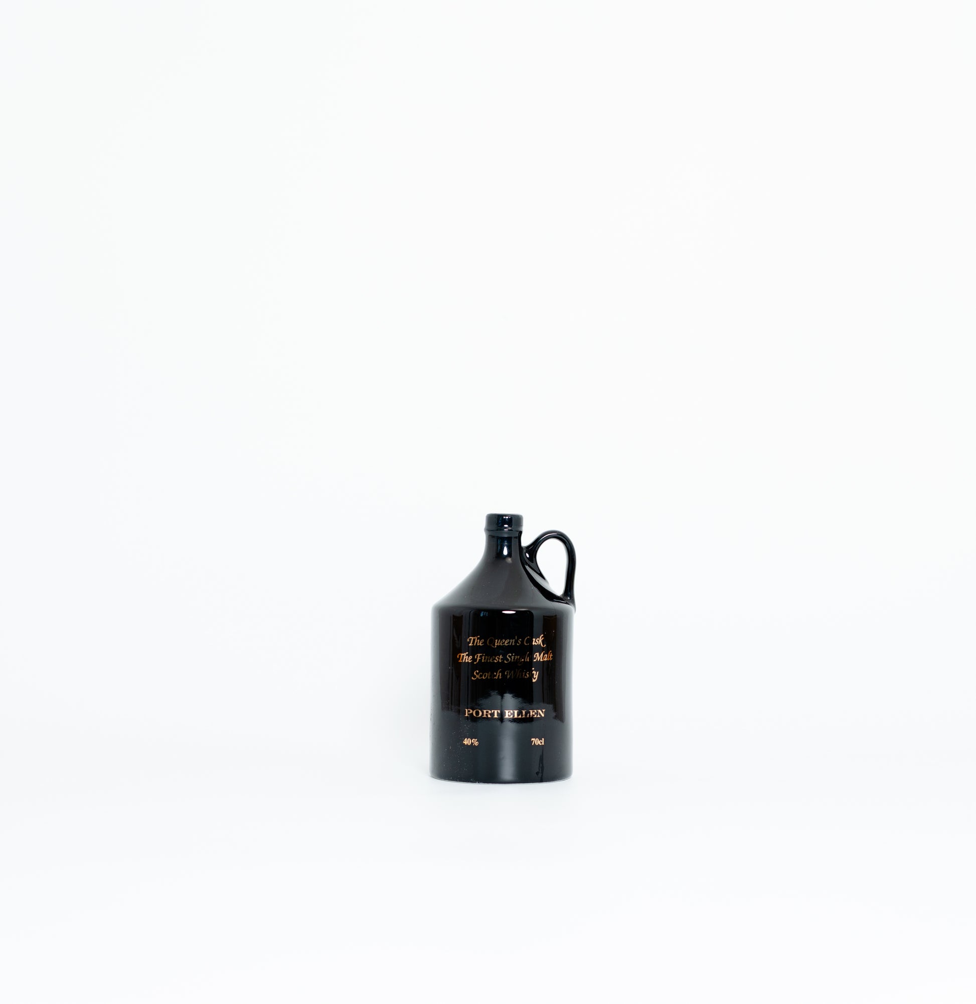 1 x ceramic bottles of The Queens Cask The Finest Single Malt Scotch Whisky, 40%, 70cl, conditions as photographed. Comprising of 1 x Port Ellen Decanter.