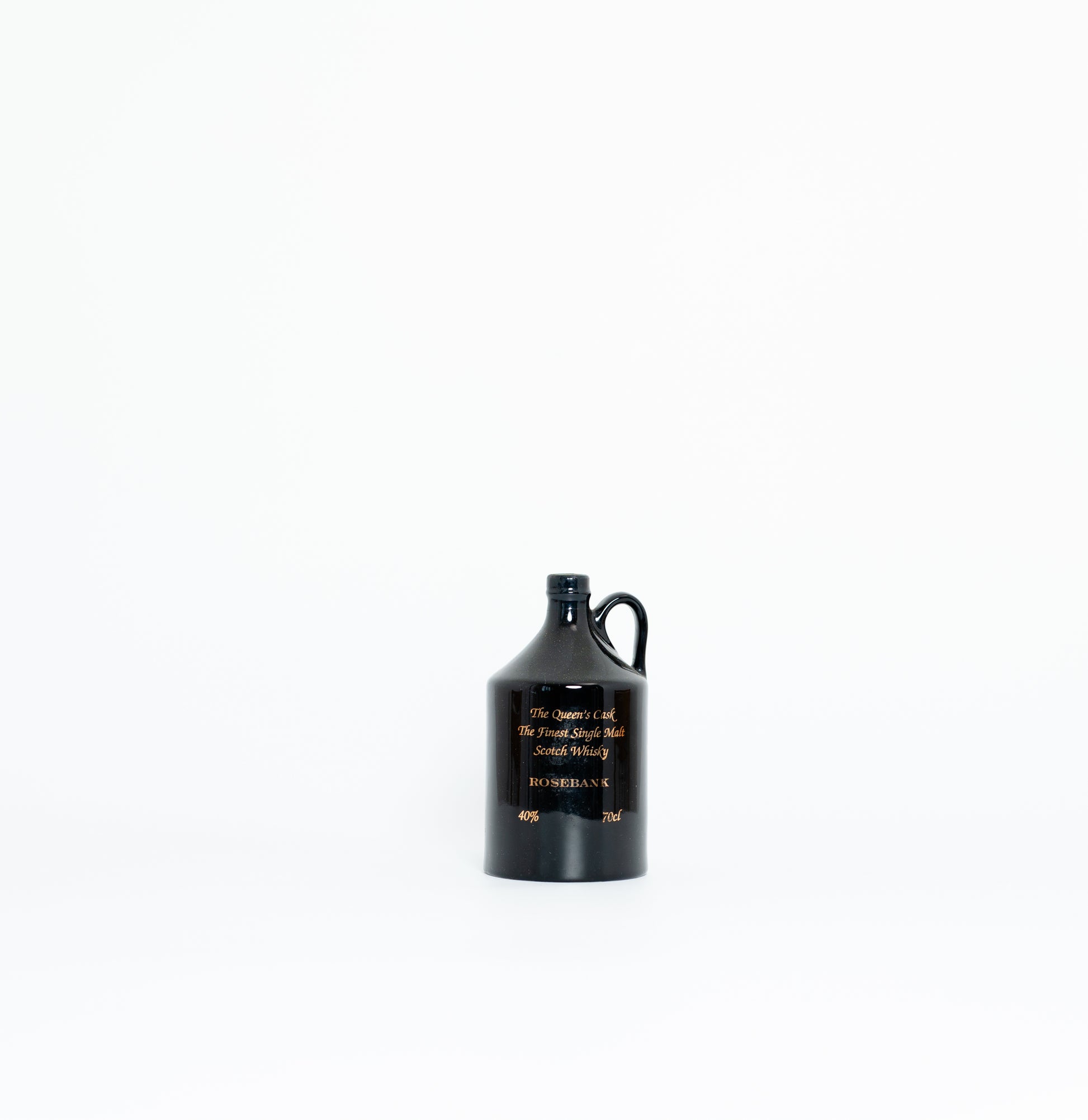 1 x ceramic bottles of The Queens Cask The Finest Single Malt Scotch Whisky, 40%, 70cl, conditions as photographed. Comprising of 1 x Rosebank Decanter.